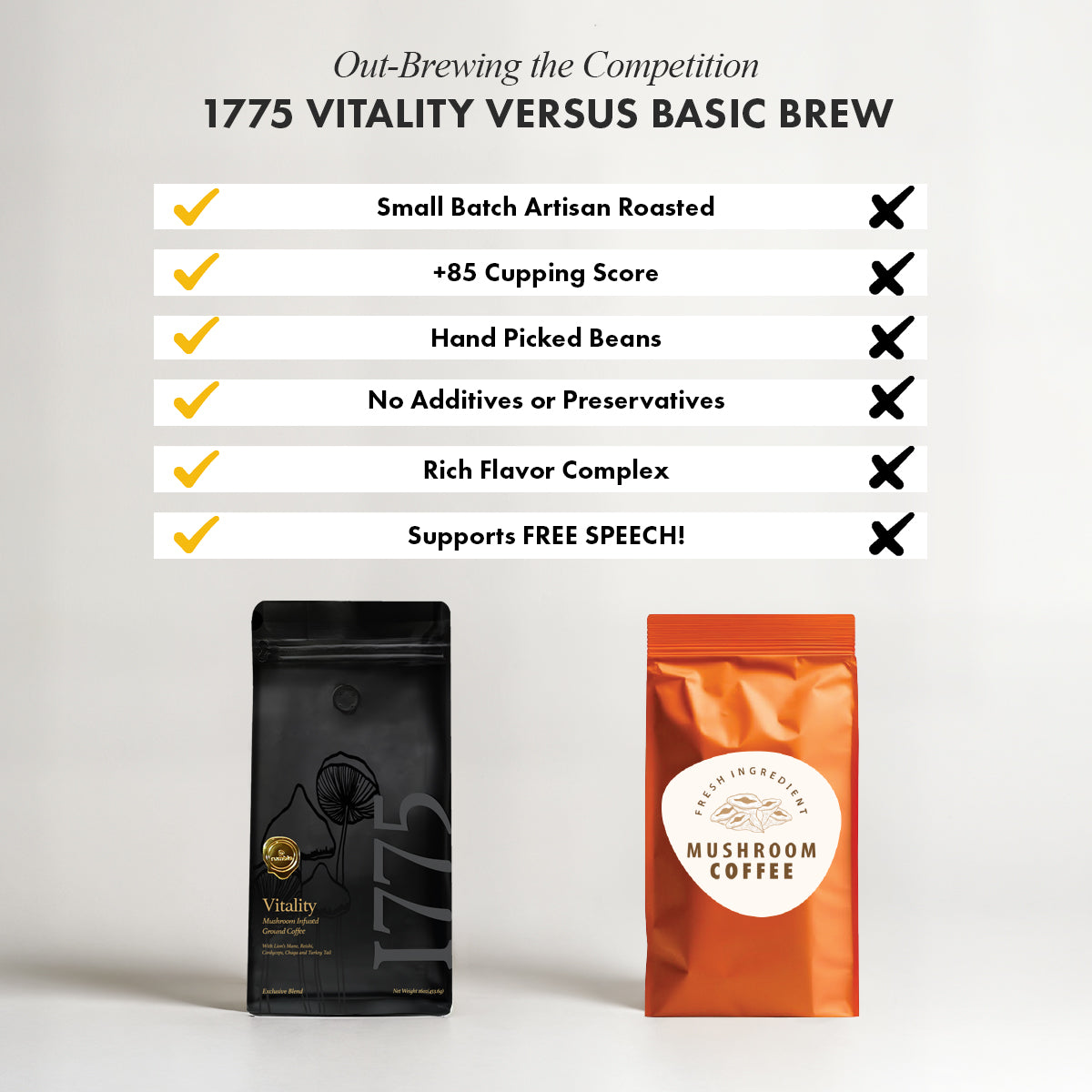 Fueled by Lion’s Mane, Cordyceps, Reishi, Chaga, and Turkey Tail, this coffee delivers unmatched focus, energy, and resilience. Crafted from the same specialty-grade coffee you trust—single-origin, small farms, and small batches for bold, smooth flavor. Pure power in every cup—no compromises.